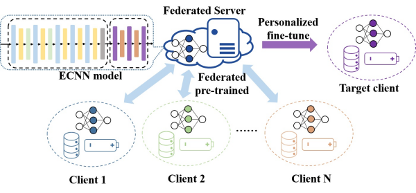 該團(tuán)隊(duì)提出了兩階段聯(lián)邦遷移學(xué)習(xí)框架。第一階段采用聯(lián)邦遷移學(xué)習(xí)框架,使多個(gè)分布式電池通過共享模型參數(shù),協(xié)作訓(xùn)練全局模型,既可以學(xué)習(xí)通用知識(shí)又能夠保護(hù)數(shù)據(jù)隱私;在第二階段,通過目標(biāo)電池的少量本地?cái)?shù)據(jù)對(duì)這一全局模型進(jìn)行微調(diào),建立捕獲個(gè)體電池特征的個(gè)性化模型。聯(lián)邦遷移學(xué)習(xí)框架構(gòu)建在輕量級(jí)卷積神經(jīng)網(wǎng)絡(luò)上,并通過有效的通道注意機(jī)制提升了性能。實(shí)驗(yàn)結(jié)果表明,該框架在公共快充電池?cái)?shù)據(jù)集上的預(yù)測(cè)性能優(yōu)于傳統(tǒng)方法。